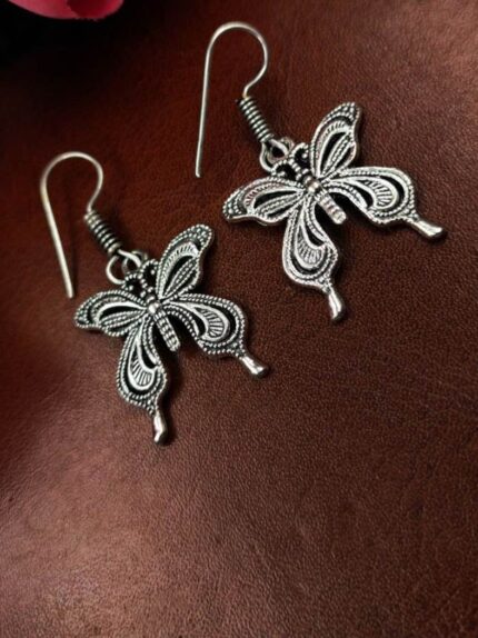 German Silver Buddha Hast Earrings | Unique Oxidized Hook Jewellery