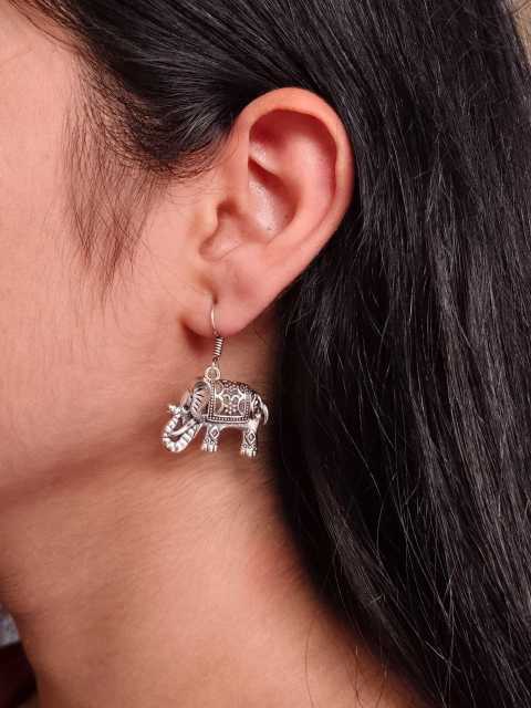 Lightweight German Silver Elephant Earrings | Perfect For Everyday Wear Dangler Hook Jewelry